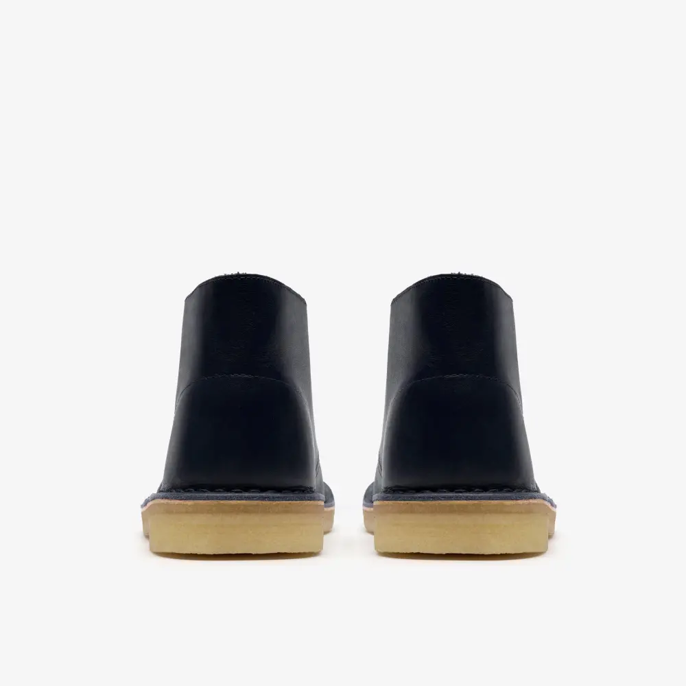 Cultural cachet and design DNA: no shoe is quite like the Clarks Originals Desert Boot. Born in the '50s, its minimal, progressive style sparked a worldwide footwear revolution. And every design detail today remains true to that first pioneering pair. Here, the boot’s crafted, clean lines are enhanced with premium navy leather and finished with an unfussy lace fastening. The authentic crepe sole completes this distinctive silhouette. Instantly recognizable, forever iconic. A true original.