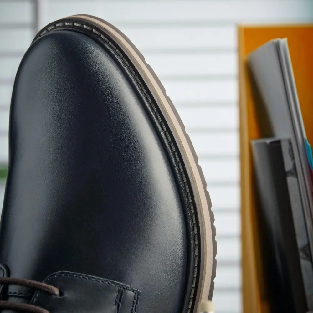 - Premium navy leather upper