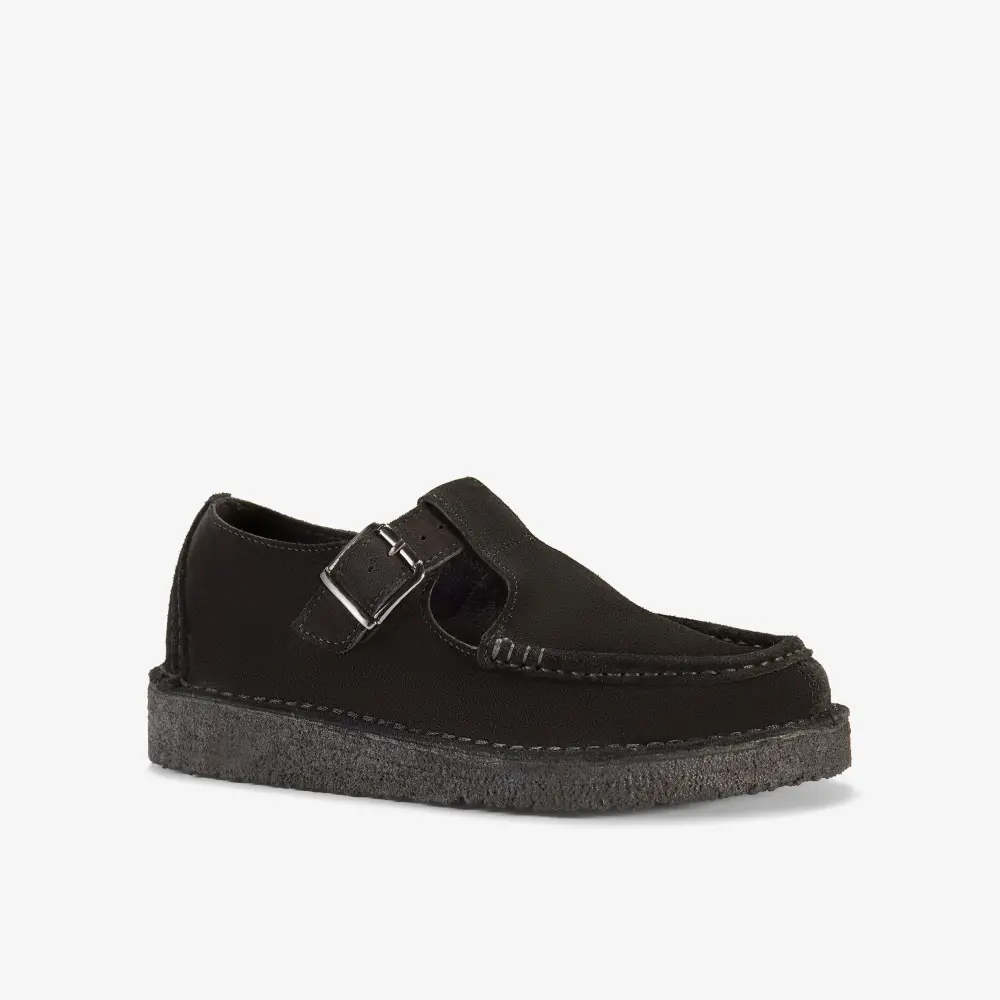 Crafted with suede uppers and a secure buckle fastening, the Nomad T Bar combines functionality with refined details. The hand-stitched apron seam adds a touch of craftsmanship, while the Clarks Originals heat-embossed metallic logo on the sock and the iconic camel Trek Man embossed on the heel counter showcase the shoe’s heritage.