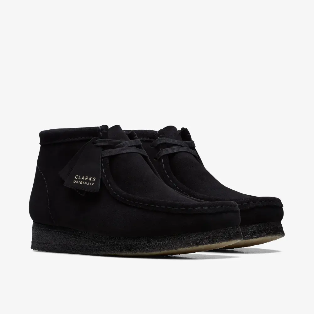 The Wallabee has become an iconic classic in our Clarks Originals collection across the globe thanks to its moccasin construction and structural silhouette. Featuring clean and simple lines, this comfortable lace-up boot in black suede is teamed with a three-quarter sock for supreme comfort and our signature crepe sole which continues to stand the test of time.