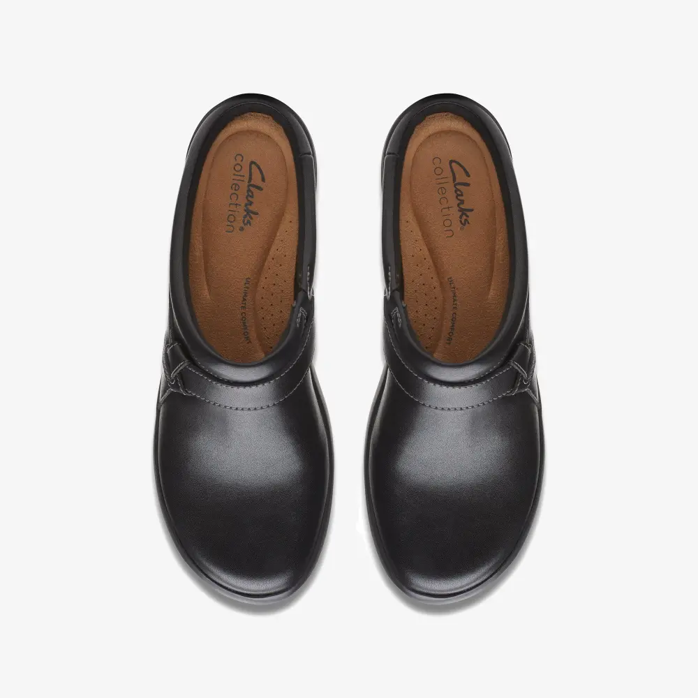 From workwear to weekends, our Angie Mist mule is a true wardrobe investment. Crafted in classic black leather, a bouncy Ultimate Comfort footbed brings lasting cushioning thanks to its light EVA sole, keeping you easy on your feet all day long.
