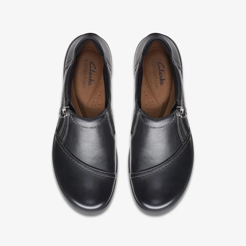 Keeping comfort at its core, our trusty everyday shoe Carleigh Ray is crafted for back-to-work and busy weekend wear. Durable leather uppers in ultra-wearable black wrap the foot perfectly, while our signature underfoot cushioning and a super-grippy sole keep every step grounded.