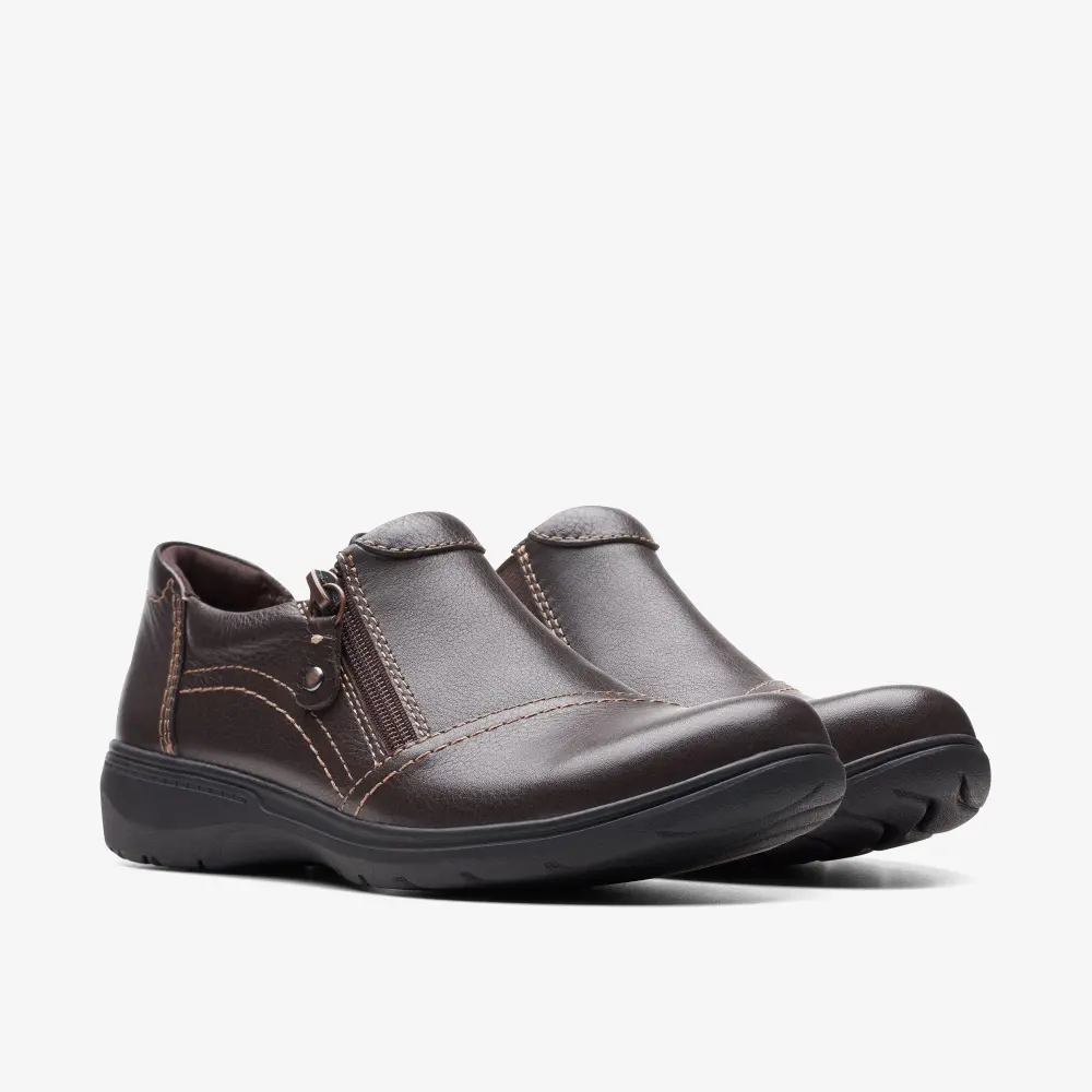 Keeping comfort at its core, our trusty everyday shoe Carleigh Ray is crafted for back-to-work and busy weekend wear. Durable leather uppers in rich dark brown wrap the foot perfectly, while our signature underfoot cushioning and a super-grippy sole keep every step grounded.