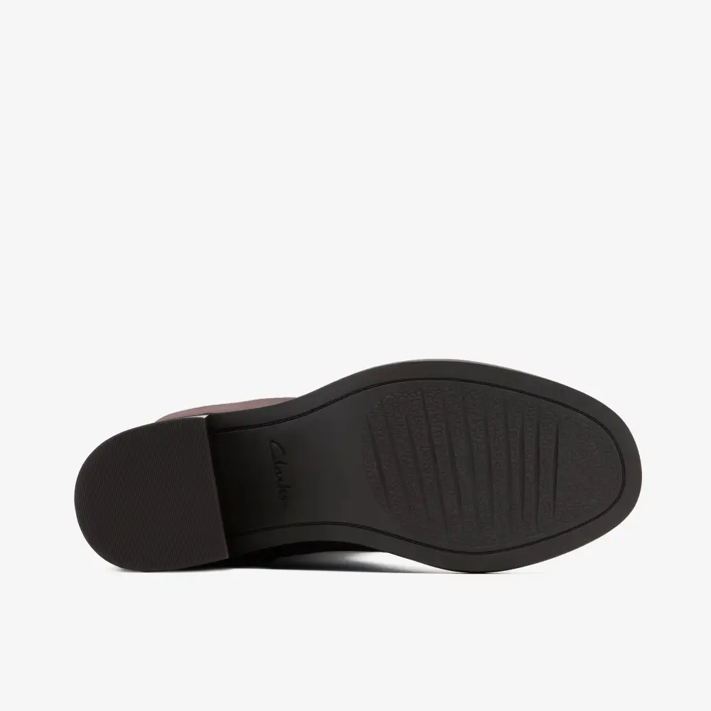 Elevate weekday or evening dressing with classic knee high boot Chamberly Hi. A luxe dark brown suede upper and stacked heel deliver a premium, timeless finish, completed with a pillowy foam footbed for signature round-the-clock Clarks comfort.