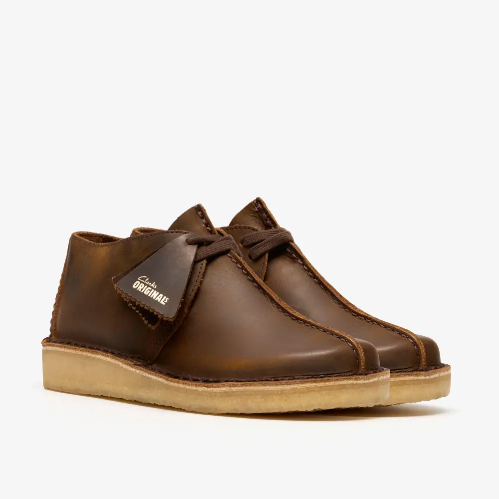 An icon crafted for everyday wear, the Desert Trek returns in a timeless beeswax hue ready for a season of ultra-versatile styling. Butter-soft leather uppers contrast perfectly with its natural crepe sole, while flat laces and our classic fobs lend a casual finish.