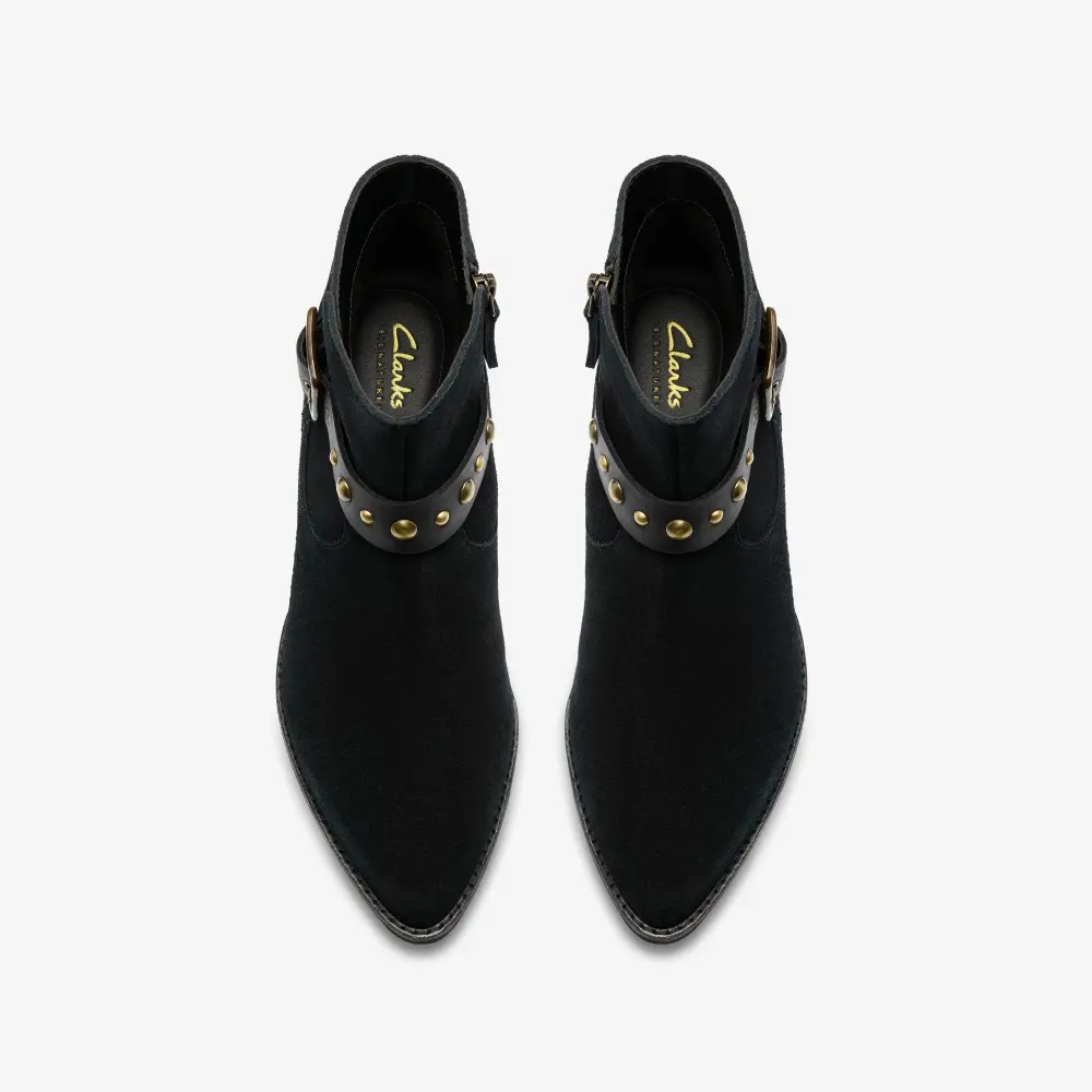 Womens Morzine Buckle Black Suede Ankle Boots